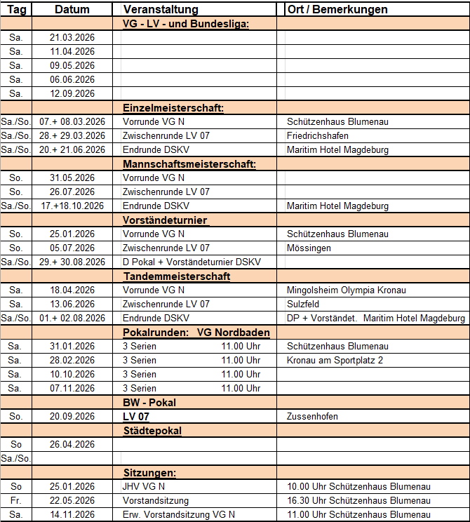 Die DSKV / LV / VG Termine für 2026